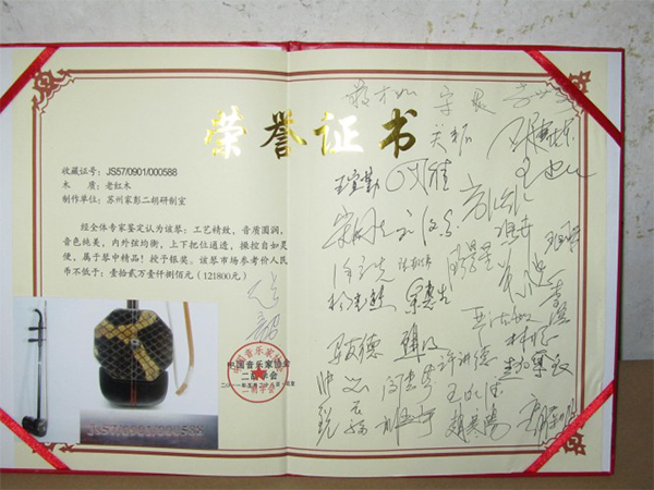 二胡制作大師丁家彭先生1949年出生樂器世家,17歲隨其祖父學(xué)琴藝,并深得精髓,其聰穎好學(xué),悉心鉆研與 探求二胡制作,博得同行的欽佩贊許,更得了許多知名演奏家的稱贊,充分認(rèn)識到二胡制作每個環(huán)節(jié),都對二胡制作都有影響力,因此對二胡的選材,選料,蟒皮都十分嚴(yán)格,二胡整體穩(wěn)定性良好,環(huán)境干擾影響極小。